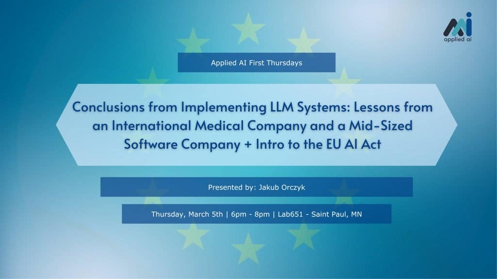 **Overview** A practical, comparison-driven session on what actually happens when LLM projects go to production—across two very different environments: a regulated international medical company and a mid-sized software company. We’ll distill the key implementation takeaways, share patterns that worked (and the ones that didn’t), and close with a clear, non-lawyer intro to what the EU […]